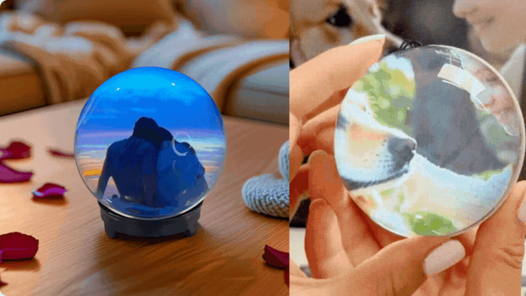 Memory Pearl is a palm-sized glowing orb that plays your own short video with sound, inside a warm, crystal-like display. Soft light, gentle motion, and a built-in speaker turn your favorite memories into lifelike moments you can see, hear, and feel.