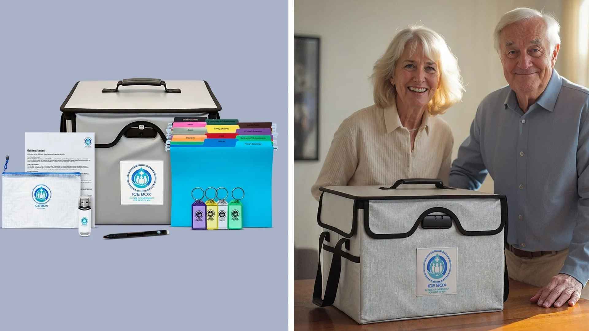 ICE Box is a secure, fire-resistant, water-resistant system that organizes your essential documents, accounts, and valuables in one easy-to-access place. It’s the stress-free way to ensure your family can find everything they need—even in an emergency.
